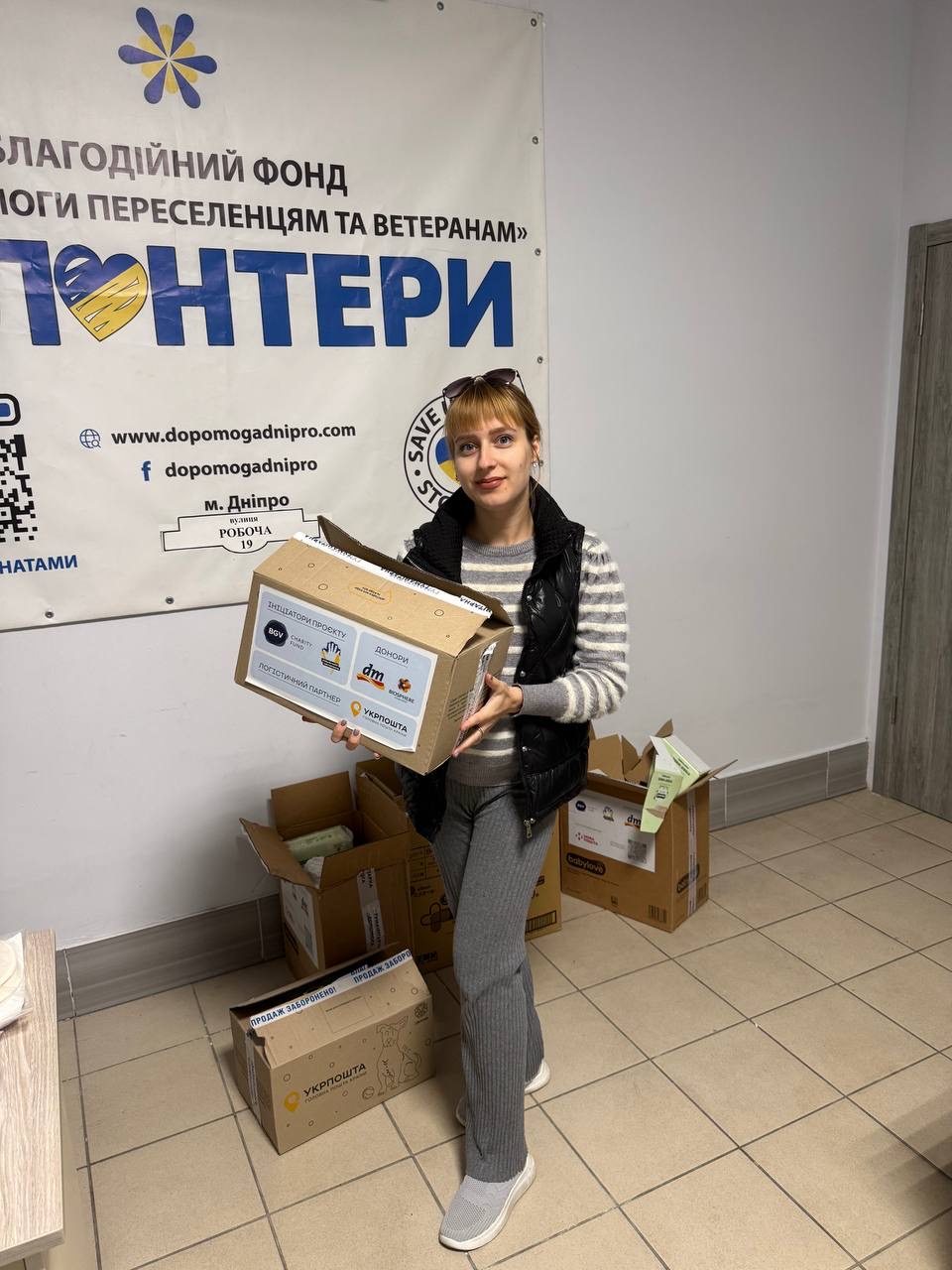 - БФ «Центр допомоги переселенцям та ветеранам» (м. Дніпро) – центр, який щодня допомагає людям, що залишили свої домівки. Передали дитячі засоби догляду (гелі, шампуні, серветки, креми, молочко для тіла), набори дитячого одягу, іграшки, засоби гігієни та зубні пасти Elmex.