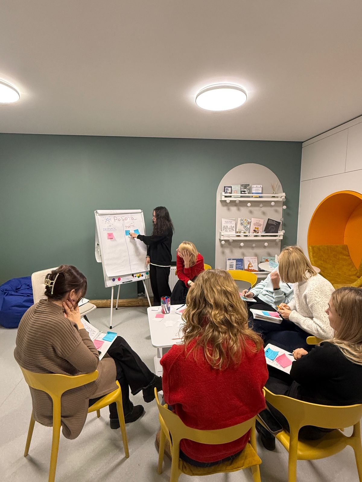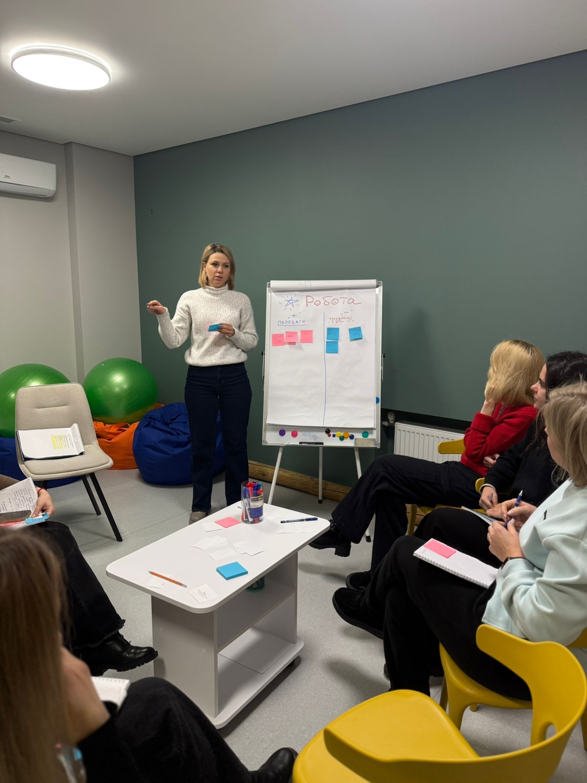 Робота фахівців Центру життєстійкості — це щоденний супровід людей, які стикаються з болем, втратами та тривогами війни. Аби залишатися надійною опорою для громади та уникати професійного вигорання, команда потребує регулярного аналізу практики та психологічного розвантаження. Саме з цією метою керівниця Центру Лілія Соколюк провела планову інтервізію для фахівців простору.